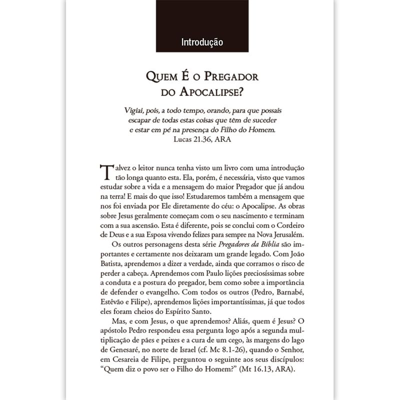 Neste sétimo e último livro da série Pregadores da Bíblia, é abordada a mensagem de Jesus, com ênfase nas suas profecias escatológicas.